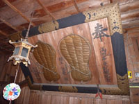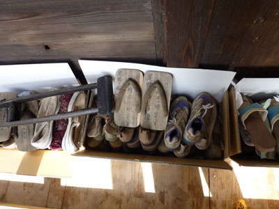 足病息災、平癒を願って奉納された履物や松葉杖。